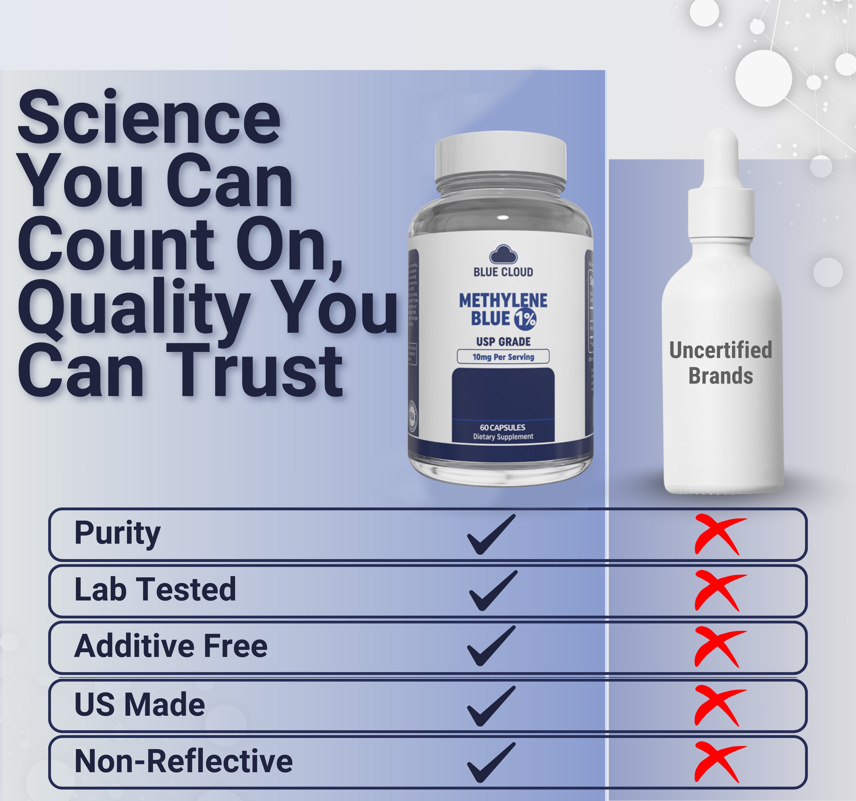 Unlock the potential of Methylene Blue, a pharmaceutical-grade solution designed to elevate cognitive performance and support overall well-being.